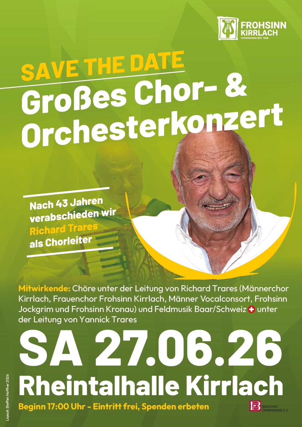 Großes Chor- und Orchesterkonzert zur Verabschiedung von Richard Trares am 27. Juni 2026